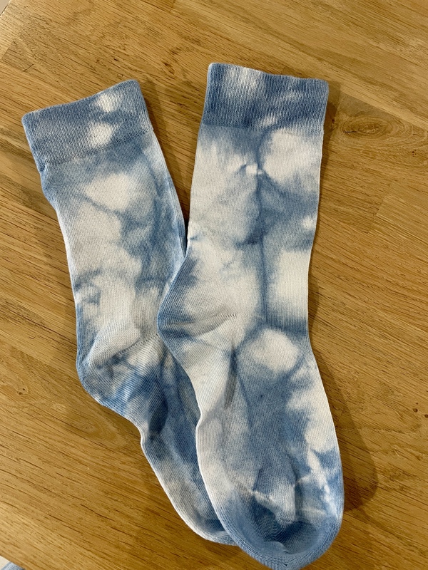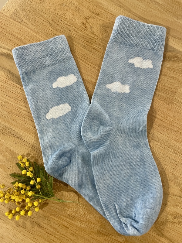 Chaussettes teintes à la main dans mon atelier à St Germain sur Ille